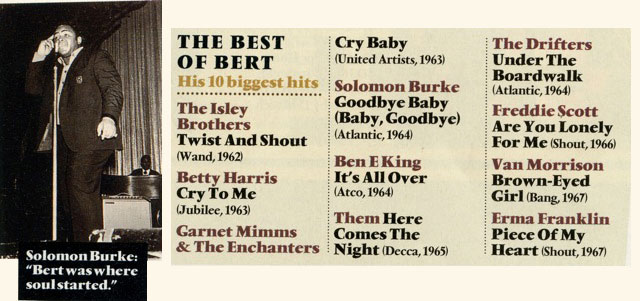 But Bert Russell Berns was also a master of symphonic soul, of the uptown New York sound that combined cascading orchestration with drenching gospel vocals. He made the kind of records Bacharach & David might have cut had they ventured down to Muscle Shoals: stupendous soul singles like Betty Harris’s Cry To Me, Ben E. King’s It’s All Over, and Freddie Scott’s Are You Lonely For Me Baby. In partnership with Jerry Ragovoy, Berns also wrote and produced orgasmic soul ballads by Garnet Mimms and Erma Franklin. “He was a great writer, a great man,” said Solomon Burke. “Cry To Me [1961]… was really soul music. It wasn’t like pop at that time, it wasn’t country, it wasn’t like R&B. The only way it could be classified was soul music. That's when it all started.”
